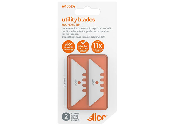 Slice® Utility Blades 10524 (Rounded Tip) là lưỡi dao gốm an toàn cao cấp, tương thích với nhiều dòng dụng cụ của Slice như: metal-handle utility knives, mini scrapers, Edge Utility Cutter và EDC Pocket Knife.