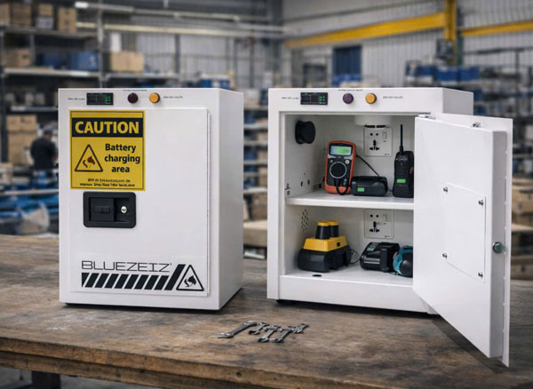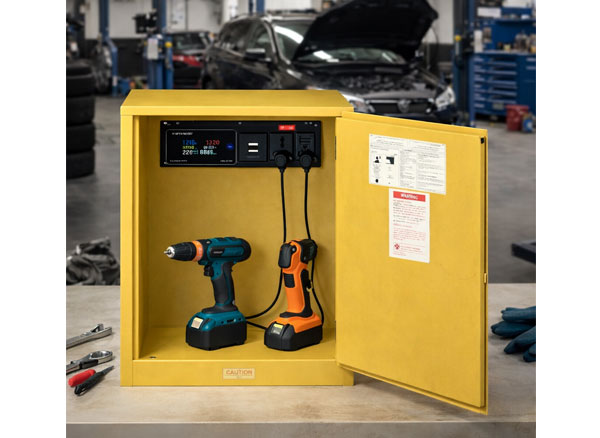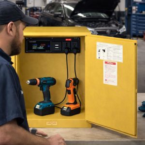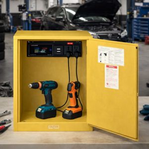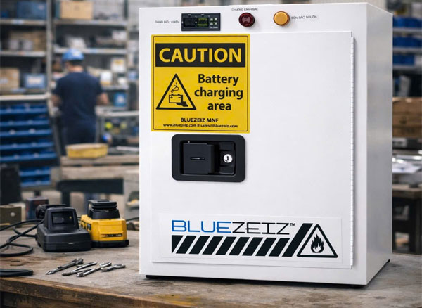 Tủ được thiết kế chuyên dụng cho việc lưu trữ và sạc pin, dụng cụ cầm tay, đảm bảo an toàn cháy nổ và tối ưu hóa không gian sử dụng trong môi trường nhà xưởng, gara, phòng kỹ thuật.